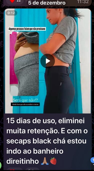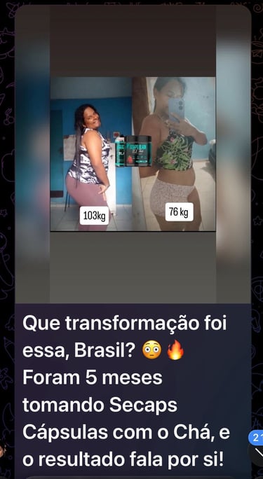 O SecapsBlack entrou como um apoio na minha rotina. Não é milagre, mas fez diferença na minha constância e na forma como passei a encarar meu dia. Com o tempo, me senti mais confiante e consegui perceber mudanças no meu corpo e na minha disposição. Consegui perder peso de forma saudável e consistente, sem sofrimento.”